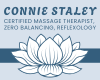 I'm Connie Staley, a state-certified therapeutic massage & bodywork practitioner based in Charlottesville, Virginia, with over 30 years of experience. I specialize in Zero Balancing, Reflexology CranioSacral therapy, and have also been heavily influenced by the teachings and daily practice of yoga.